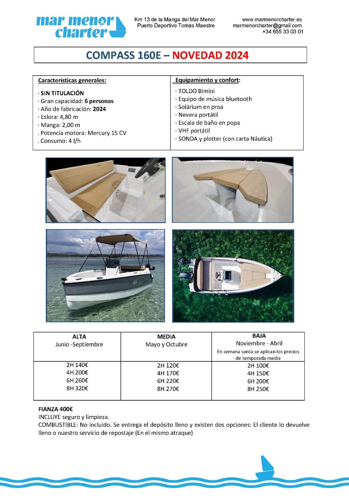 . Potencia motora: Mercury 15 CV . Consumo: 4 1/h